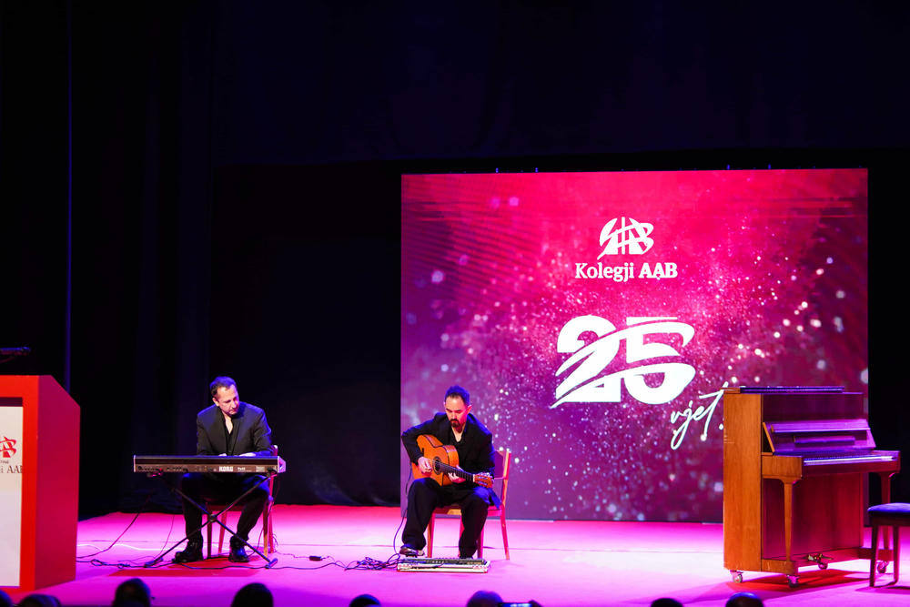 Astrit Stafaj (kitarë) dhe Artan Rexhepi (piano) krijuan një dialog muzikor simbolik për 25 vitet e Kolegjit AAB, përmes veprës “25 gërshetat”.