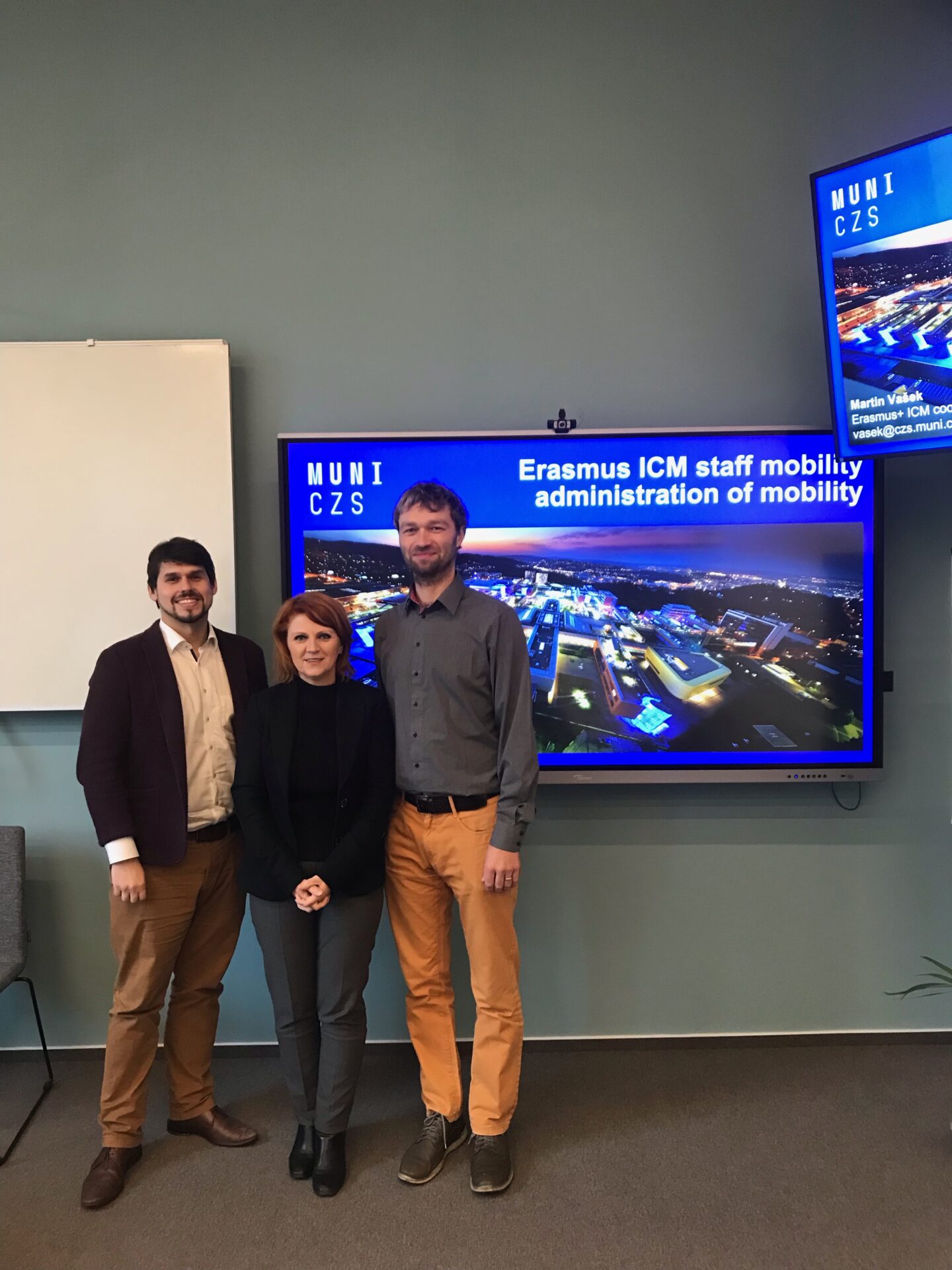 Prorektorja për Marrëdhënie Ndërkombëtare dhe Bashkëpunim Venera Llunji, dekani i Fakultetit të Kulturës Fizike dhe Sportit Fatmir Pireva, dekani i Fakultetit të Administratës Publike Vrullim Buja dhe profesori Donat Rexha kanë zhvilluar takim pune, me udhëheqësin e Divizionit të Projekteve në Qendrën për Bashkëpunim Ndërkombëtar të Universitetit Masaryk të Çekisë. Takim me Adam Hykl dhe me udhëheqësin e Zyrës për Bashkëpunim Ndërkombëtar Maerin Vašek i takonte një rëndësie të veçantë pasi ngërthente tema rreth bashkëpunimit mes dy institucioneve, por edhe shënimin e sukseseve të përbashkëta në realizimin e projektit të Erasmus+, ku stafi akademik kanë pasur mundësinë të zhvillojnë takime dhe studentët të vazhdojnë studimet e tyre. Si rezultat i bashkëpunimit të vazhdueshëm është dërguar njoftimi i vazhdimit të projektit përmes Erasmus+, mes Kolegjit AAB dhe Universitetit Masaryk.