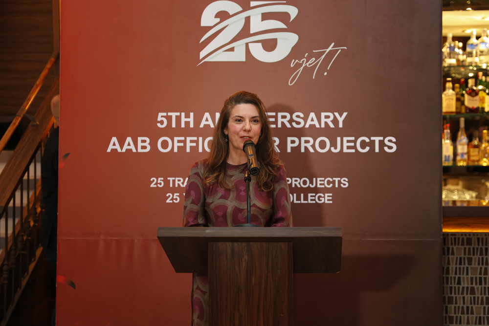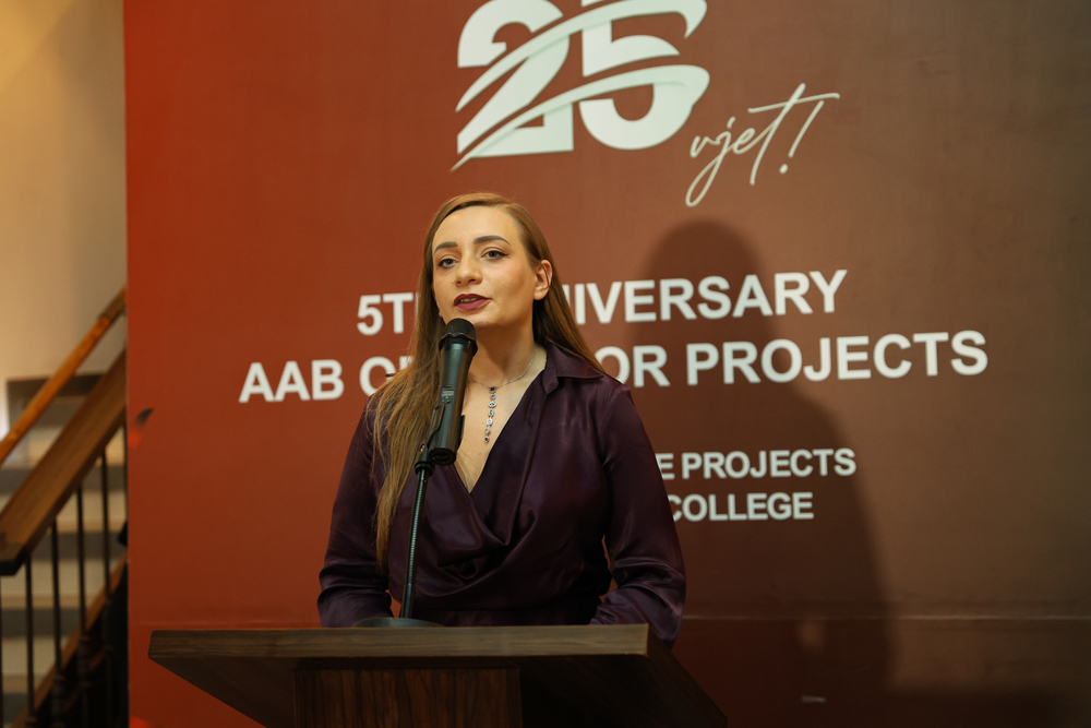 Drejtoresha e Zyrës së Projekteve, Ilirjana Geci, falënderoi të gjithë për përkushtimin, punën e palodhshme dhe besimin ndër vite në zhvillimin e dhjetëra projekteve me AAB si bartës dhe partner.
