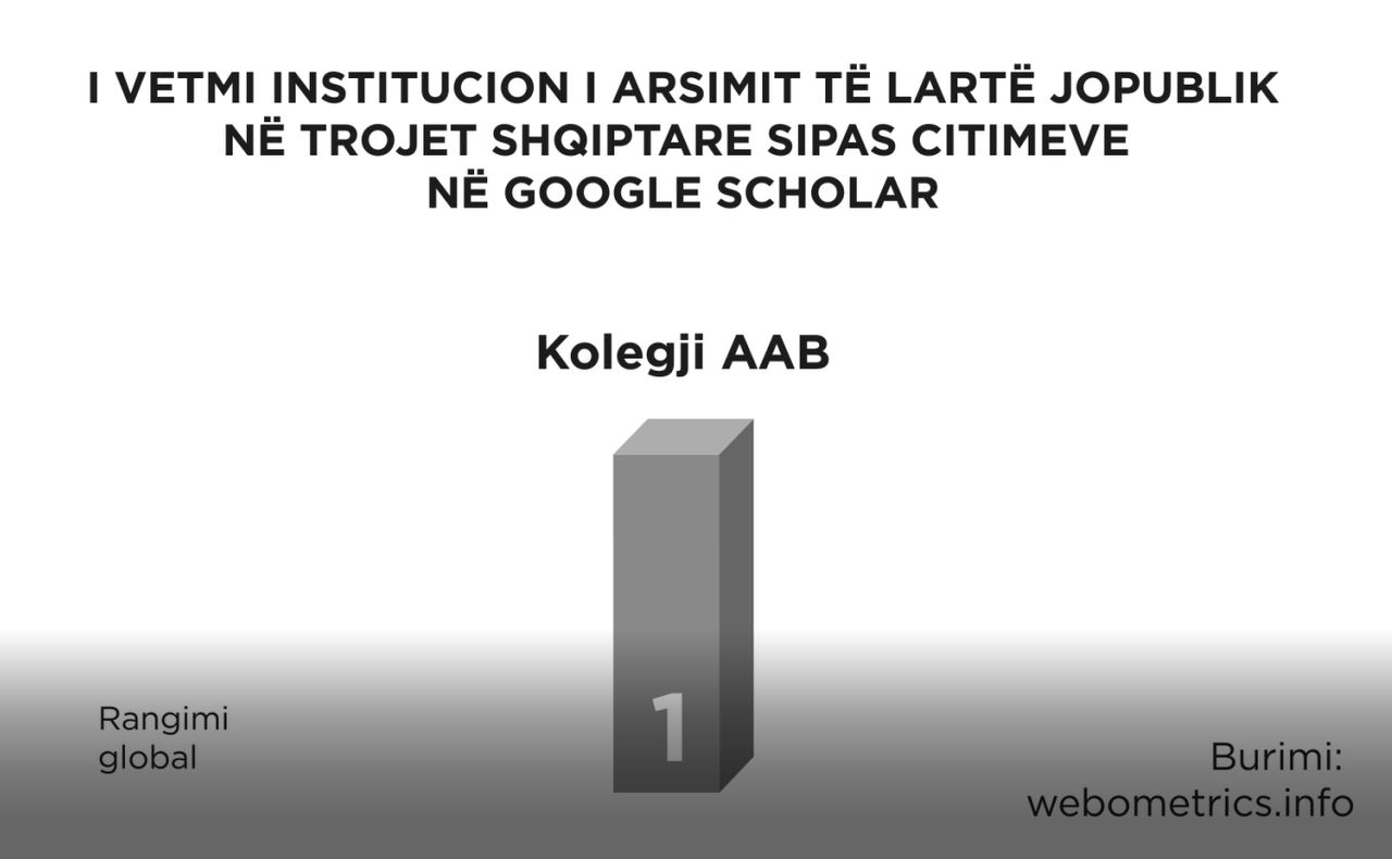 Ndryshe, nga të gjitha institucionet e arsimit të lartë në gjuhën shqipe, përveç dy institucioneve nga Kosova në rangimin sipas Google Scholar është përfshirë edhe Universiteti Bujqësor i Tiranës, përderisa Kolegji AAB, mbetet i vetmi institucion jopublik në trojet shqiptare, që ka arritur të përfshihet në këtë rankim.