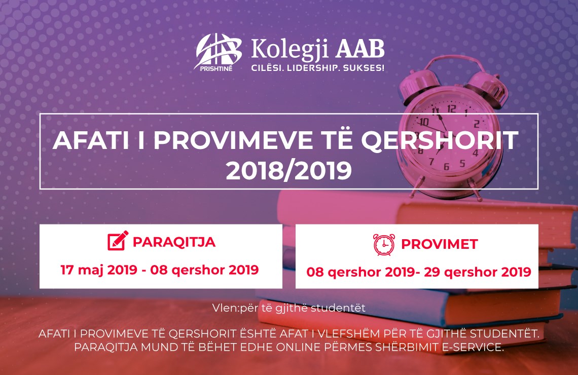 Të nderuar studentë,fundi i këtij semestri akademik po afrohet – pason afati i provimeve të qershorit.Andaj, ju njoftojmë se afati i qershorit tashmë është shpallur.