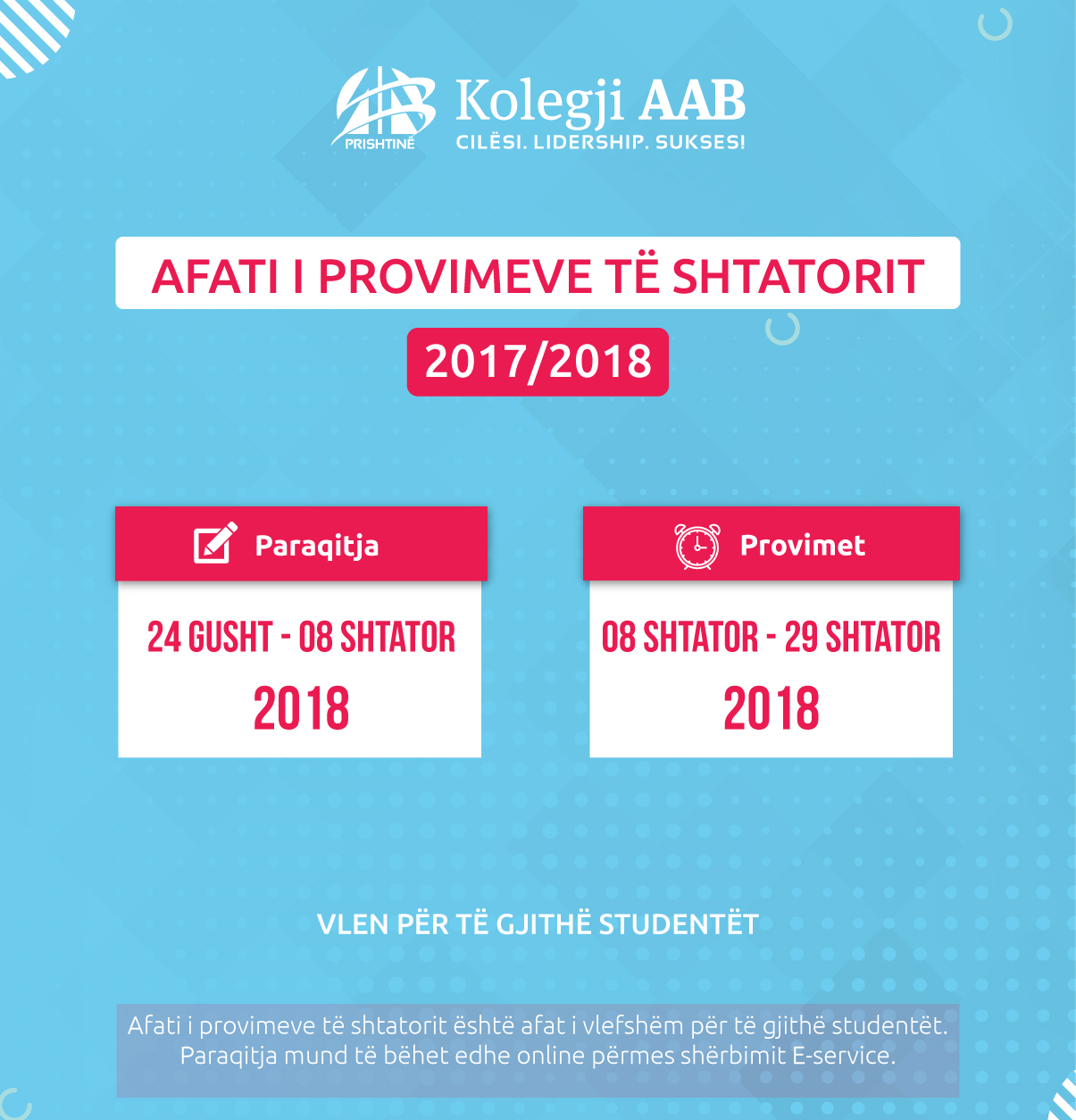 Lajmet Afati i provimeve të shtatorit 2017/18