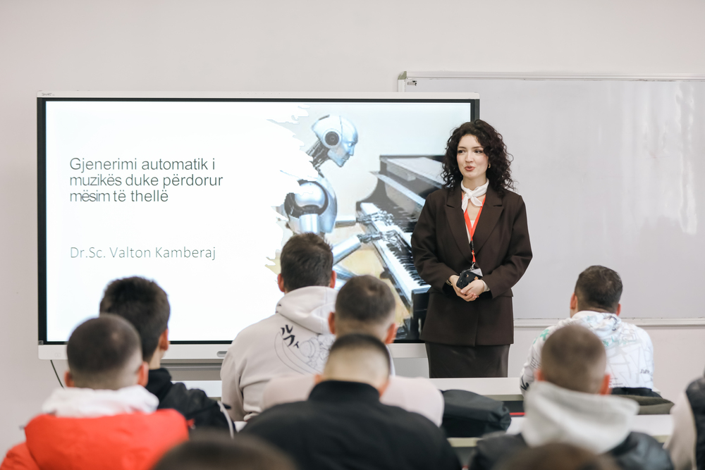 Gjatë prezantimit u shpjegua se si algoritmet e avancuara të mësimit të thellë, si RNN dhe Transformer, mund të analizojnë stile të ndryshme muzikore dhe të gjenerojnë melodi të reja. U theksua roli i AI në kompozimin automatik, analizën inteligjente muzikore, interpretimin virtual dhe prodhimin muzikor, duke hapur mundësi të reja për artistët dhe producentët.