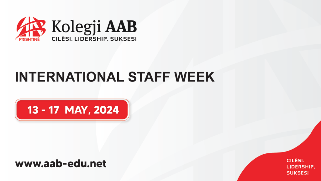 Me kënaqësi të madhe ftojmë kolegët dhe partnerët tanë të nderuar nga rajoni dhe mbarë bota të marrin pjesë në Javën Ndërkombëtare të Stafit të Kolegjit AAB, që do të mbahet në Prishtinë, Kosovë, nga data 12 deri më 16 maj 2025.