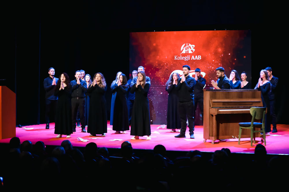 Ceremonia u moderua nga prorektorja Venera Llunji, e cila falënderoi personalitetet akademike, kulturore, kolegët, studentët, partnerët dhe miqtë e AAB-së.