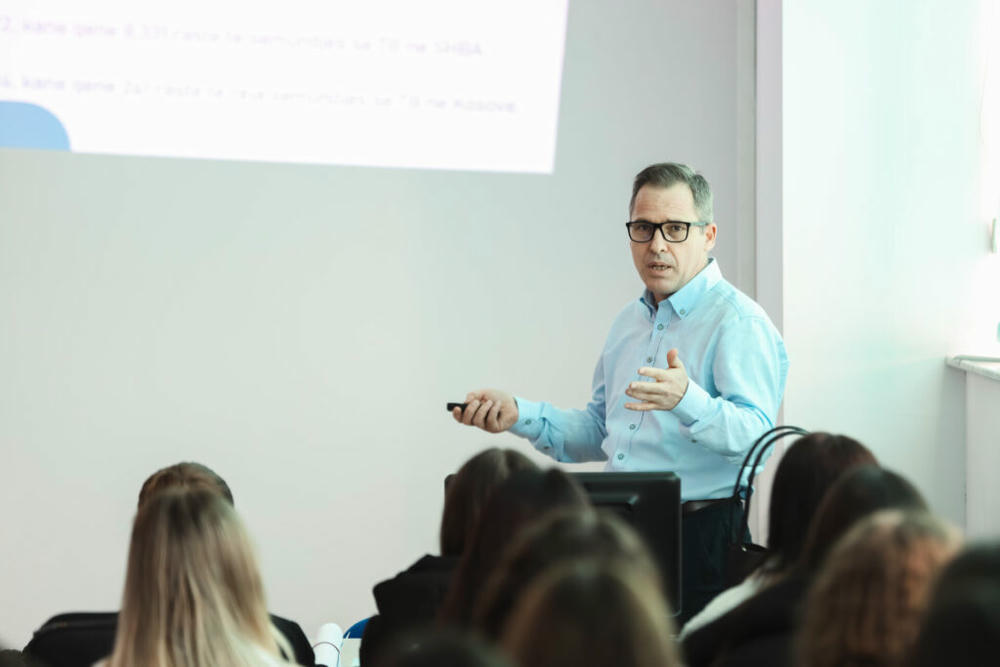 Gjatë ligjëratës z.Morina foli për shpërndarjen e kësaj sëmundje, faktorët e riskut, testimin, trajtimin dhe eliminimin e saj.