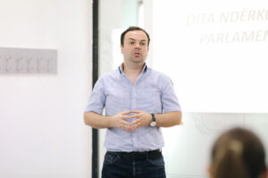 Tema e ligjëratës ishte “Roli i shoqërisë në zhvillimin e demokracisë në Kosovë”, në kuadër të lëndës “Impakti i Bashkimit Evropian në shtetndërtimin e Kosovës”, si pjesë e projektit Erasmus të Fakultetit Juridik dhe tjera fakulteteve të Kolegjit AAB.