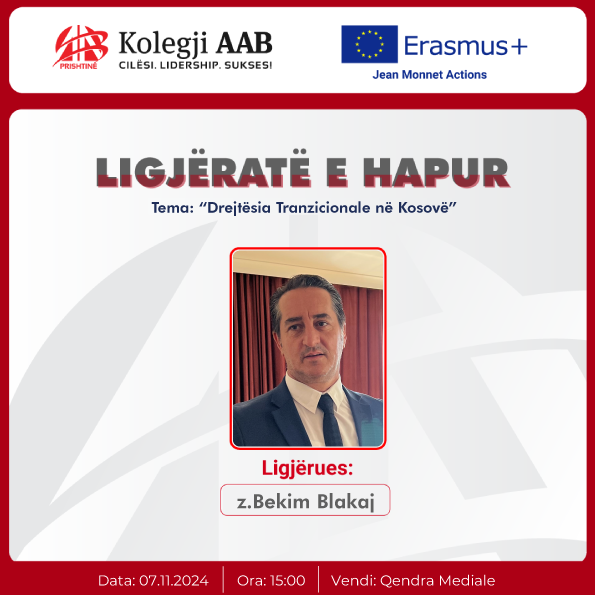 Drejtori i Humanitarian Law Center Bekim Blakaj me 7 nëntor do mbaj ligjëratë për studentët e Kolegjit AAB, duke filluar nga ora 15:00 në Qendrën Mediale.