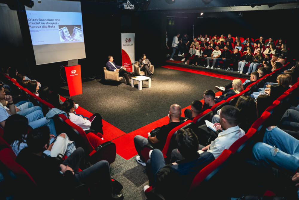 Në Teatrin Kamertal të Kolegjit AAB u mbajt ligjërata me titull: “Tregjet, Krizat financiare dhe efektet në shoqëri – Kosova dhe Bota”, nga eksperti i shquar i financave, Emanuel Bajra, organizuar nga Fakulteti Ekonomik.
