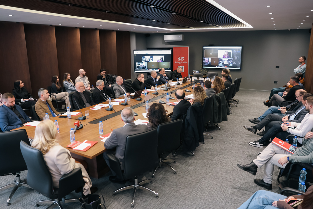 The roundtable was opened by the Rector of AAB College, Dr. Sc. Blerim Olluri, while the welcoming address was delivered by the initiator of the event, the Dean of the Faculty of Economics, Prof. Assoc. Dr. Xhavit Islami.