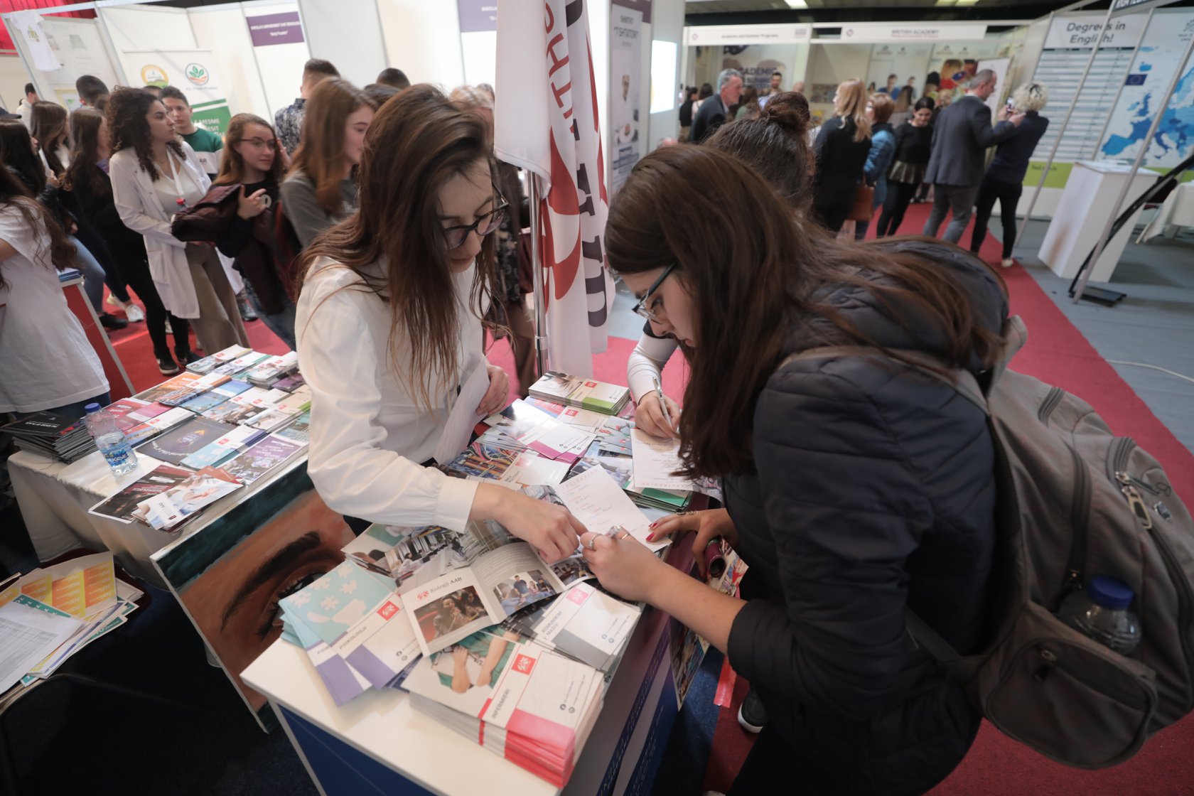 At the 2019 Educational Fair that’s being held in the Youth Palace where dozens of educational institutions are presenting their academic offerings, not only from Kosovo, but also from the region and international universities, the stand that is most visited is the one of AAB College.