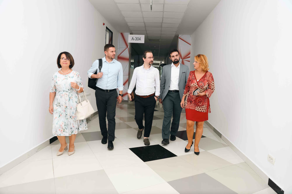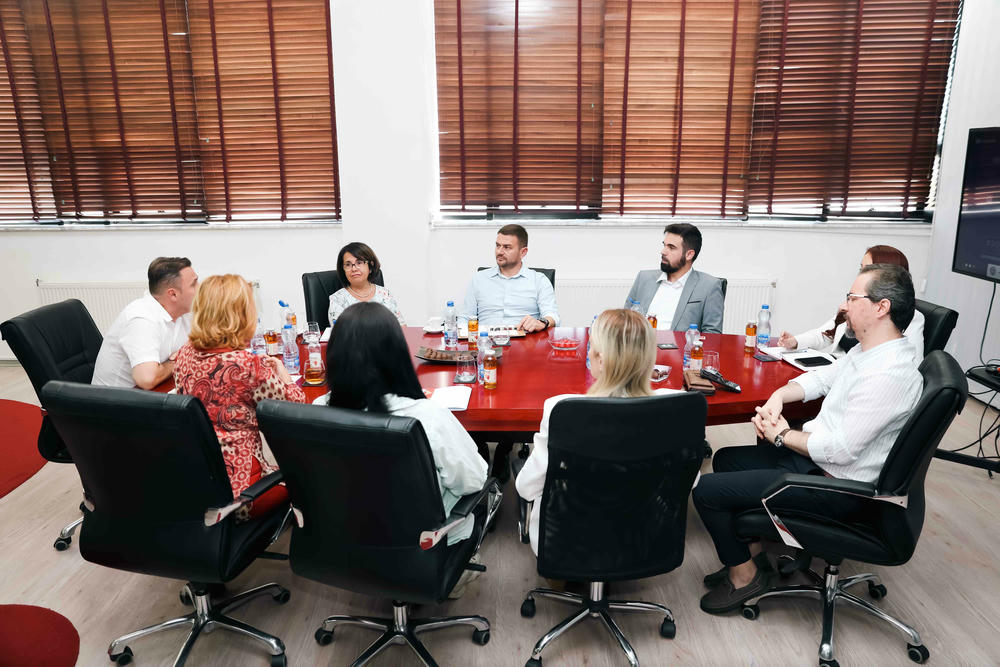 The delegation from Albania included Prof. Dr. Ermira Qosja and Prof. Dr. Llambi Prendi from the University of Durrës “Aleksandër Mojsiu”, together with Professors Bledar Komina and Ubejd Osmani from CIT Tirana. AAB College was represented by Vice-Rector Ilir Bytyçi, Vice-Rector Venera Llunji, Project Coordinator Mimoza Kamberi, Project Development Officer Ereza Mehmeti, and Prof. Gresa Shaqiri, Assistant to the Rector.