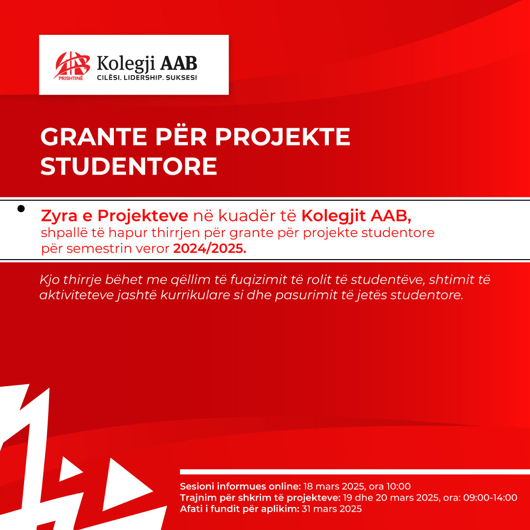 The call for student project grants from the Projects Office at AAB College is open for the summer semester 2024/2025.