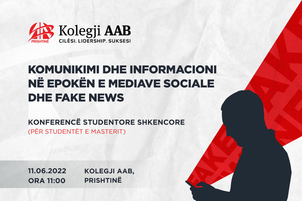 AAB College, as a non-public higher education institution, pays special attention to the acquisition of new knowledge through research. In order to expand the range of knowledge, to hold meaningful discussions, and to compare this knowledge from different academic perspectives, the Faculty of Mass Communication of AAB College invites you to participate in the Student Scientific Conference – “Communication and Information in the age of Social Media and Fake News”.
