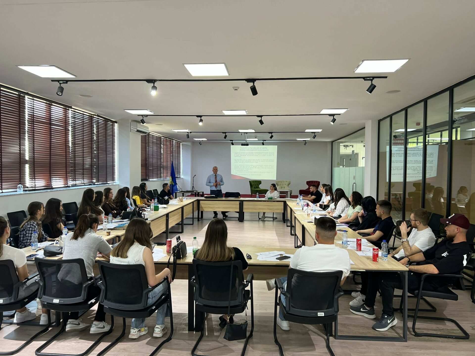 The European Center and the Rule of Law Network of the Dutch Embassy organized a training for students of the Faculty of Public Administration on the topic “Strasbourg court standards in developing societies: a condition for the functioning of the rule of law” with lecturer Prof. Dr. Mentor Borovci. In this training, students had the opportunity to expand and improve their knowledge of European Human Rights Standards.