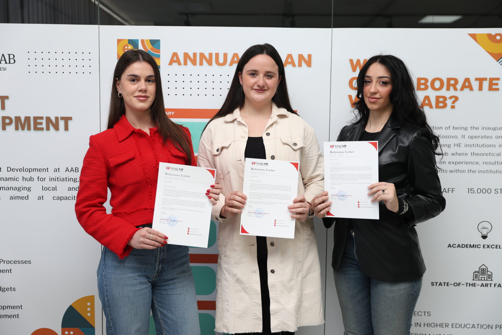 The practical work of four AAB College students Dafina Hajdari, Enita Limani, Riola Krasniqi and Bleonë Brestovci, which lasted for a period of 4 months in the Projects Office, has been successfully concluded. In an organized meeting, letters of recommendation were distributed for their excellent work and continuous commitment during this period.