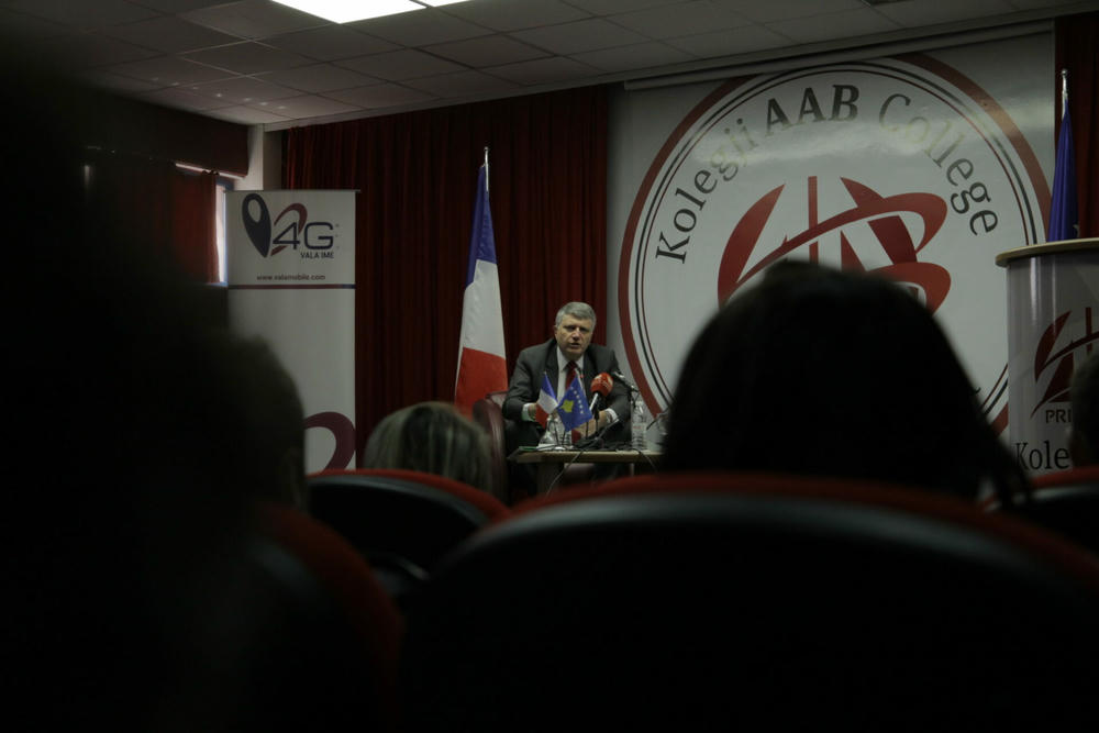 French Ambassador to Kosovo, Sh. T. Didier Chabert, in front of students of AAB College held a lecture about public diplomacy and the French political system. He has revealed details of French Republic founding and the current political system emphasising French diplomacy and its relations with EU. The influence of France to Kosovo where the topics of this lecture where students focused most.The ambassador Chabert also talked about the territorial integrity of Kosovo, the demarcation of the border with Montenegro,about the issue of former Prime Minister of Kosovo, Mr. Ramush Haradinaj, etc.