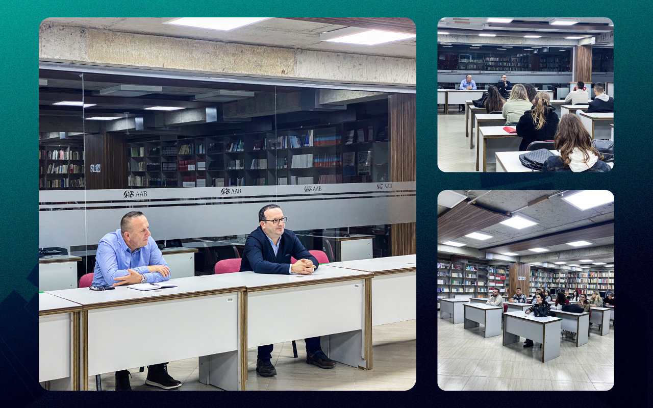 Çerkini, who leads the “Ex Project” which is an explosives factory, accompanied by the dean of the Faculty of Economics of AAB College, Medain Hashani, was open to discuss with the students what initiatives they can undertake in the future to be successful. He said that the fact that he studied at the Faculty of Economics of the AAB College played an important role in achieving success in his career, helping him to develop his business from a trader to a producer.