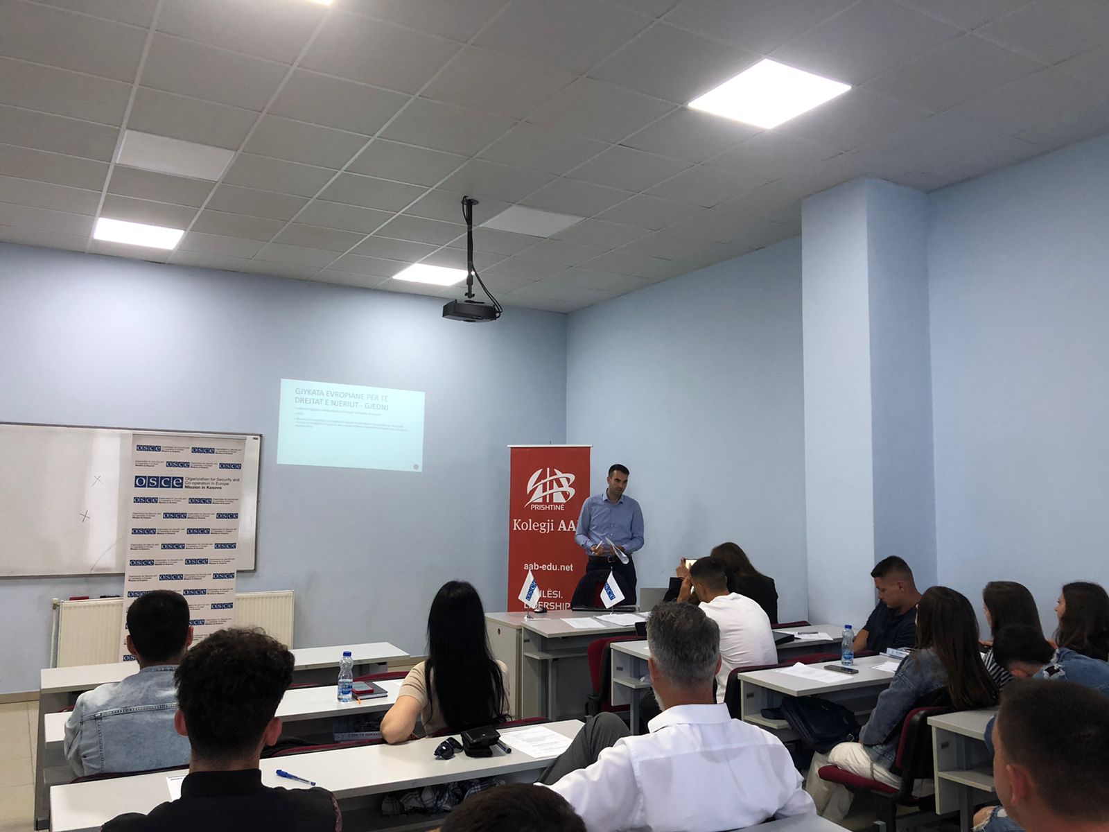 A lecture for the students of the Faculty of Law was held on the campus of AAB College in Ferizaj. Present in this lecture by Besnik Begaj was also OSCE coordinator Arijeta Rrotlla.