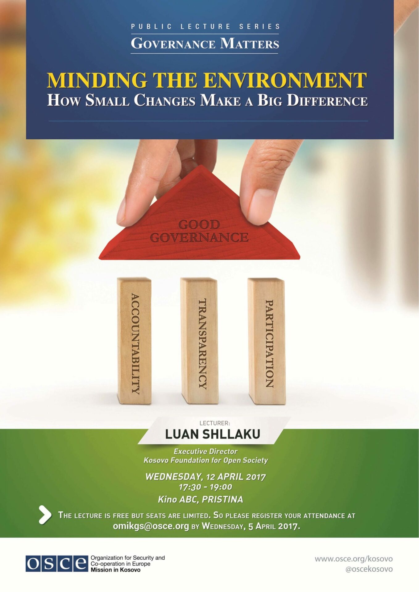 Having Mr. Luan Shllaku, Executive Director of Kosovo Foundation for Open Society as the keynote speaker, the lecture will focus on environmental issues in Kosovo from a governance perspective. Mr. Shllaku, a prominent environmentalist will discuss how small things we do together can make a big difference in our environment. Also, Mr. Shllaku’s lecture will mark the launch of the public lecture series Governance Matters through which OSCE intends to provide residents in Kosovo with an opportunity to think of critical issues in governance and explore potential action in pursuit of better governance.