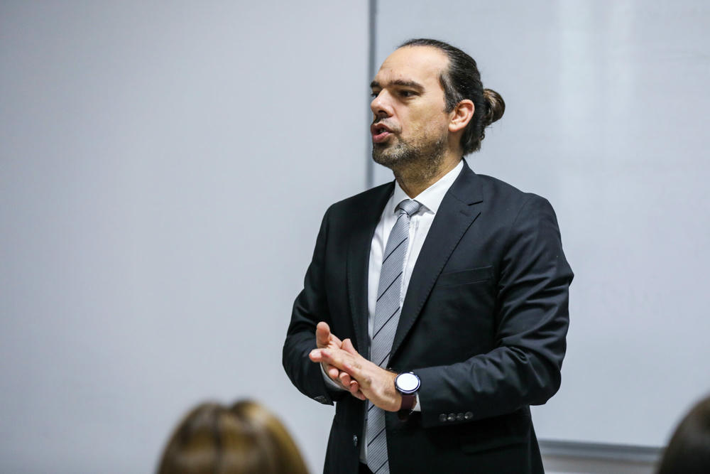 Petrit Tahiri from the Kosovo Education Center delivers a lecture for the students of the Faculty of Social Sciences.