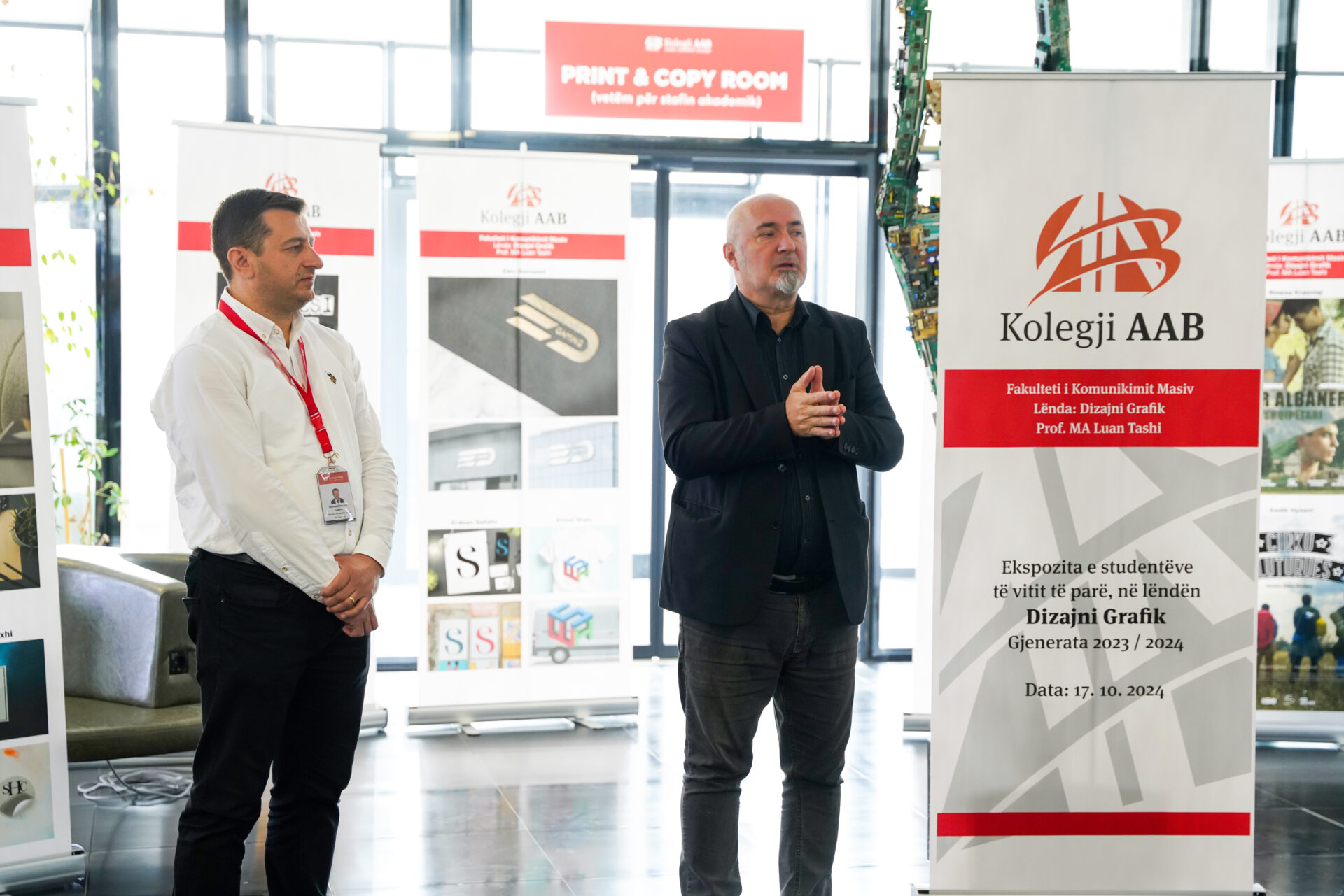 In the premises of AAB College, the exhibition of the first-year students of the Media Production program, from the Graphic Design course, was held. The dean of the Faculty of Mass Communication Gazmend Abrashi and professor of the Faculty of Arts Luan Tashi were also present at the opening of this exhibition.