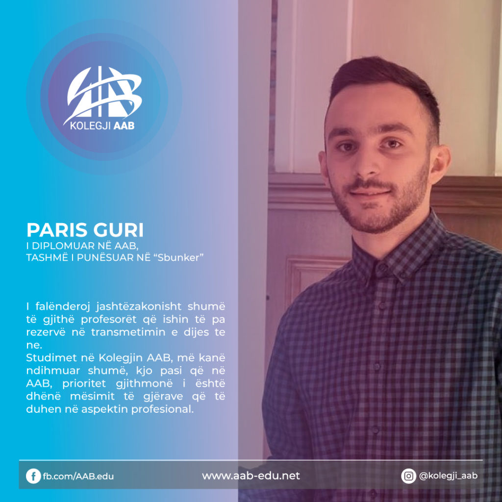 Paris Guri, AAB graduate, finds immediate employment in “Sbunker”