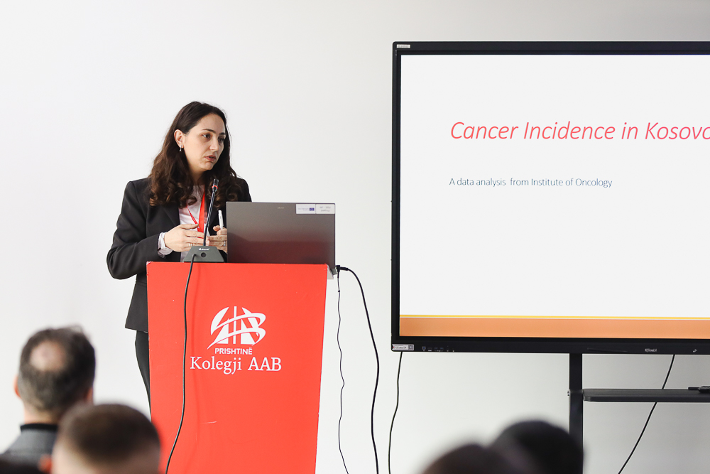 The lecture was delivered by Ilir Kurtishi, Assistant Professor and Oncology specialist, who spoke about the current state of oncological care in Kosovo, highlighting the main challenges faced by the healthcare system, such as late diagnosis, the lack of specialized resources, and the need for more advanced therapeutic approaches.