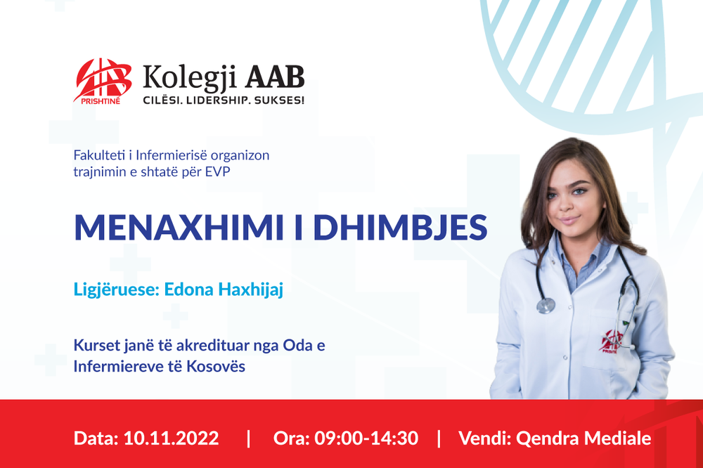 The training will be held starting from 09:00-14:30 at the Media Center of AAB College, where all health and non-health profiles can apply, who want to learn more about the challenges in health care, and the management of pain in patients with various diseases.