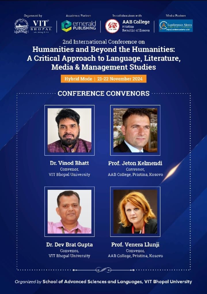 Vice-rector Llunji emphasized the critical importance of humanities disciplines such as: language, literature, media and management studies in facing the complexities of the 21st century. She praised the partnership between AAB College and VIT Bhopal, emphasizing that this collaboration transcends geographical boundaries to foster innovation and intercultural dialogue.