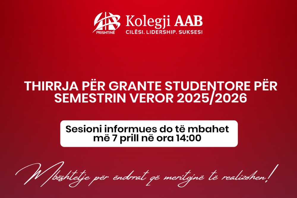 Njoftohen të gjithë të interesuarit se me daten 11 Korrik 2018(e mërkurë) ora 13:00 në Kolegjin AAB, Kandidati: Argjent Myrtezani masterit: