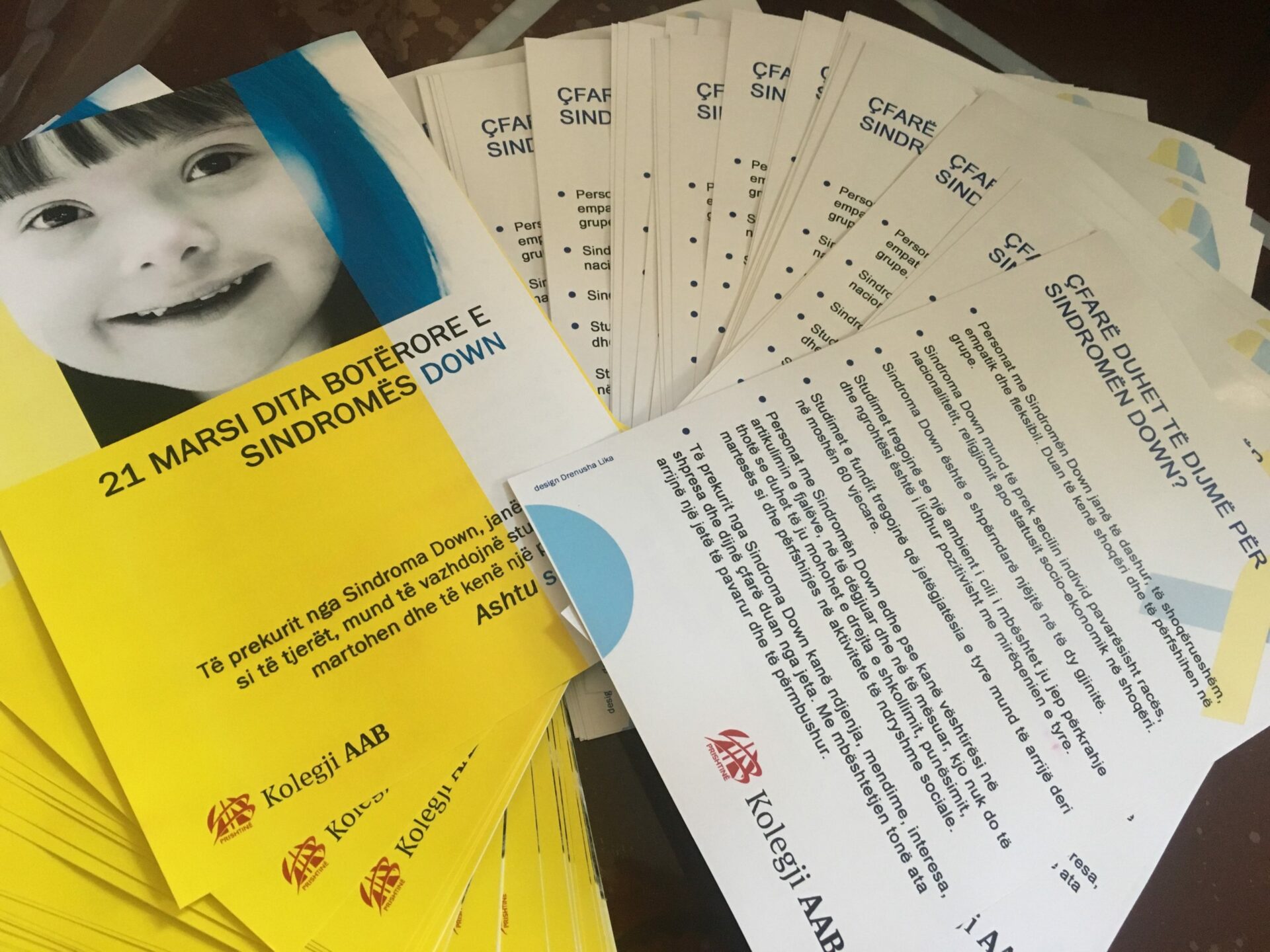 Me rastin e shenimit te dites boterore per Sindrom Down, 21 mars, studentet e Psikologjise kane shperndare fletushka me informacione per sindrom Down. Keto fletushka jane shperndare ne sheshin “Nena Tereze” ne Prishtine. Qellimi i ketij aktiviteti ishte ngritja e vetedijes ne mesin e qytetareve per sindromen Down.