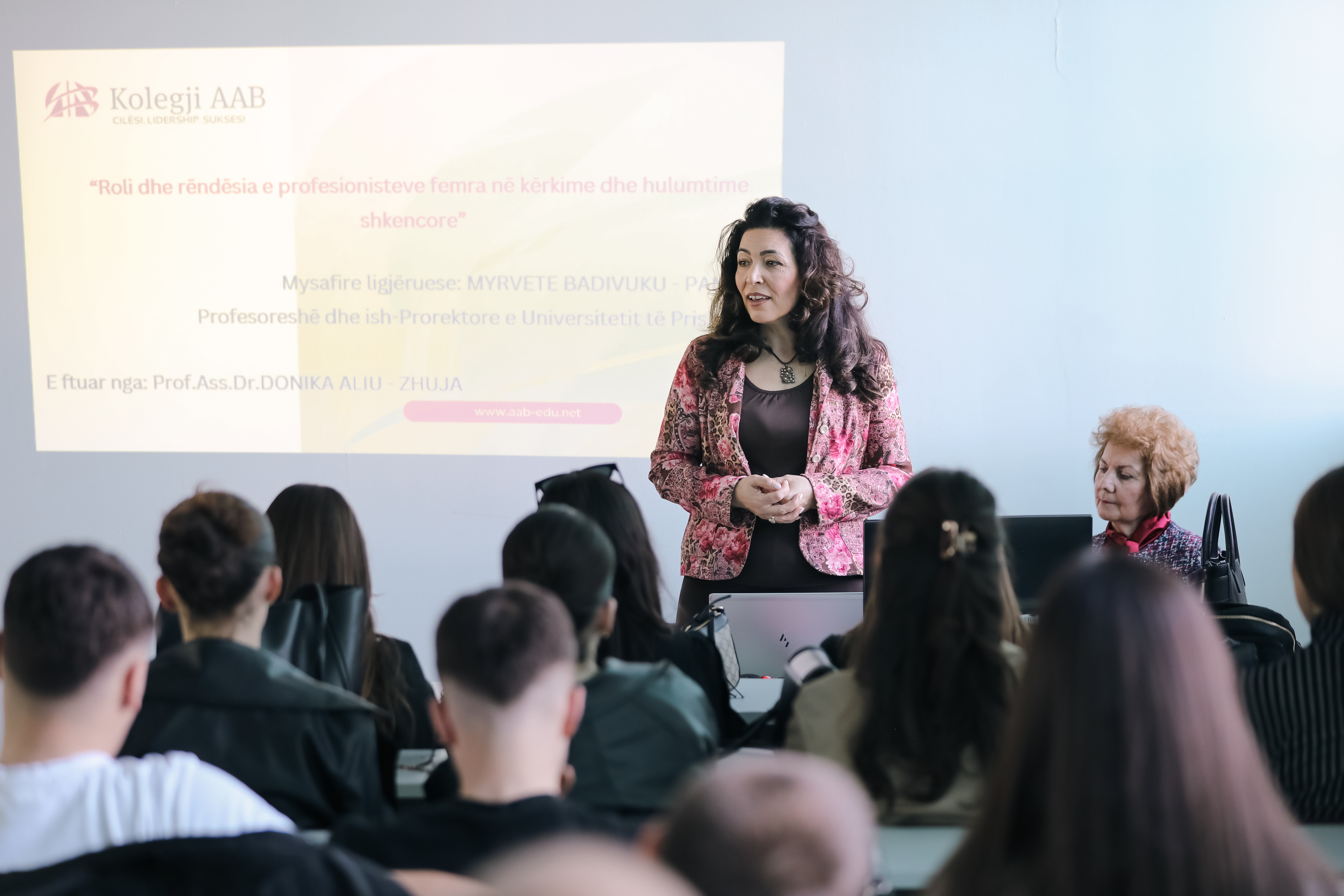 Fakulteti Ekonomik në Kolegjin AAB ka organizuar një ligjëratë me të ftuar Myrvete Badivuku Pantina, me temën “Roli dhe rëndësia e profesionisteve femra në kërkime dhe hulumtime shkencore”.