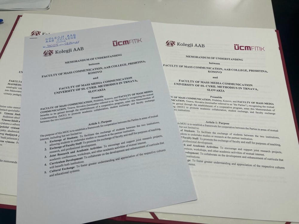 Marrëveshja u nënshkrua nga dekanët Gazmend Abrashi dhe Ľudmila Čábyová nga Universiteti Ciril Methodius.