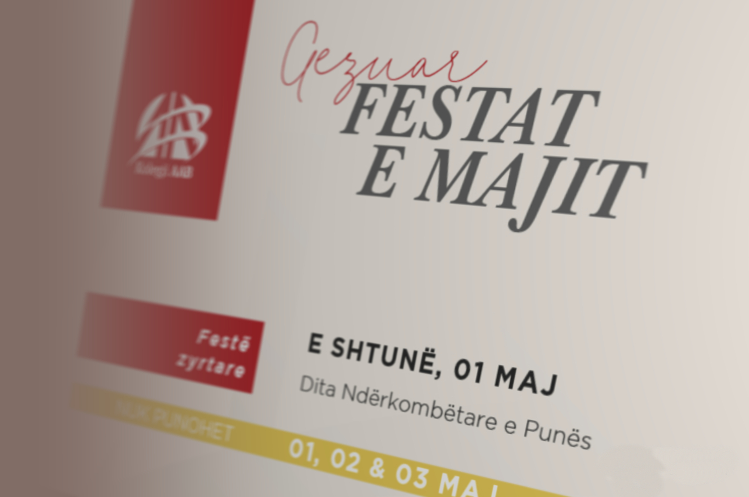 me rastin e festave gjatë muajit maj 2021, bazuar në kalendarin e festave zyrtare në vendin tonë, ju njoftojmë për ditët dhe datat kur nuk do të punohet në asnjërën nga degët tona.