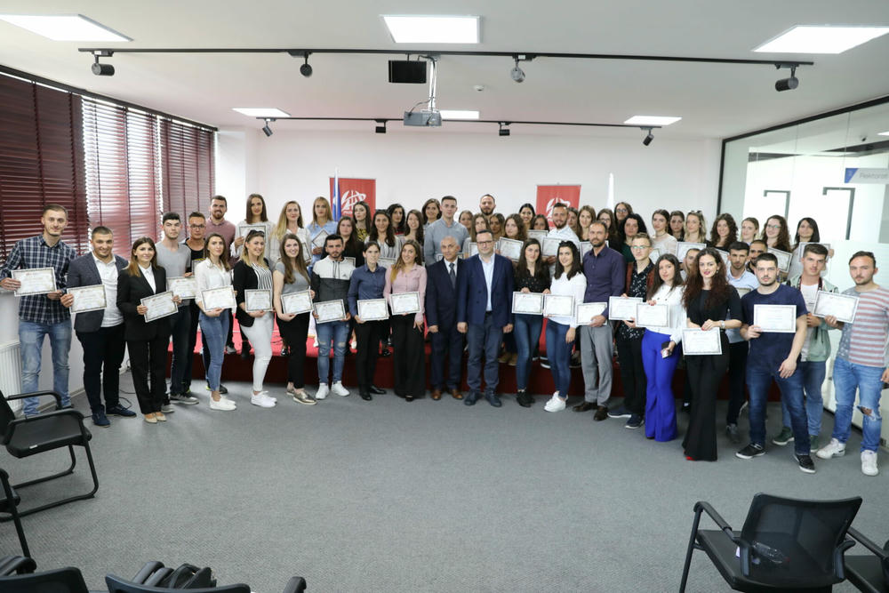Studentët e Fakultetit Ekonomik pas pjesëmarrjes në trajnimin dy ditorë, “Si të përgatitemi për tregun e punës”, i cili u mbajt në të tri kampuset e Kolegjit AAB (Prishtinë, Ferizaj dhe Gjakovë), u pajisën për rezultatet e tyre pozitive me certifikata nga rektori i këtij kolegji, prof. dr Lulzim Tafa.