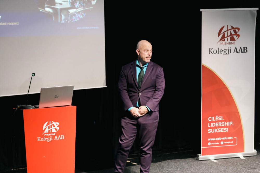 Pas saj, të pranishmit u përshëndetën nga Rektori i Kolegjit AAB, Prof. Dr. Blerim Olluri, i cili në fjalën e tij theksoi përkushtimin e institucionit për të ofruar përvoja transformuese në mësimdhënie, kërkim shkencor dhe përfshirje komunitare.