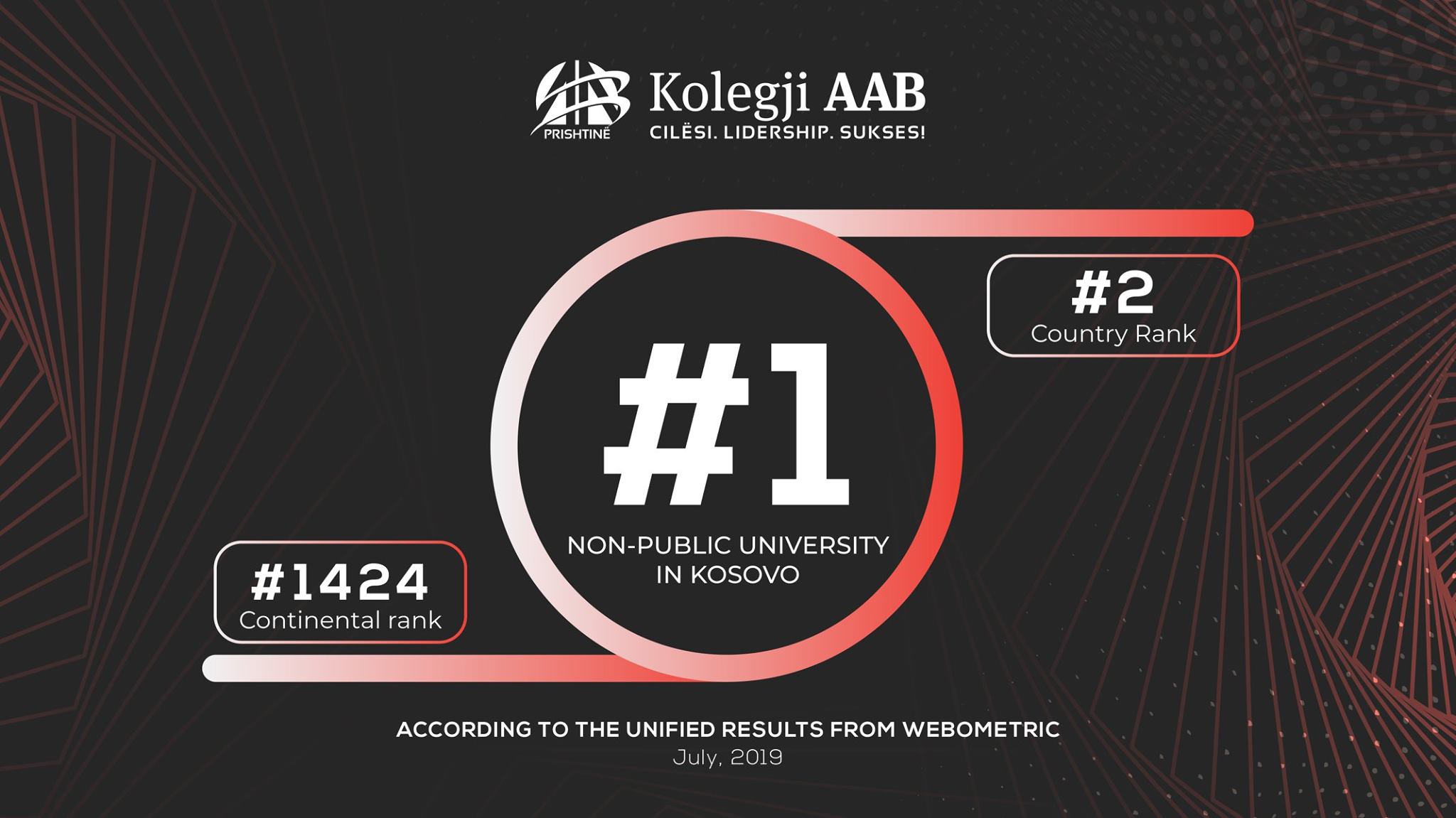 Ranglista botërore e universiteteve, Webometrics, e vetmja ranglistë globale e cila përfshin universitetet shqiptare, në edicionin e fundit të saj, të shpallur në fund të korrikut 2019, ka rikonfirmuar edhe njëherë Kolegjin AAB, si institucionin më të mirë jopublik në hapësirat mbarëshqiptare.
