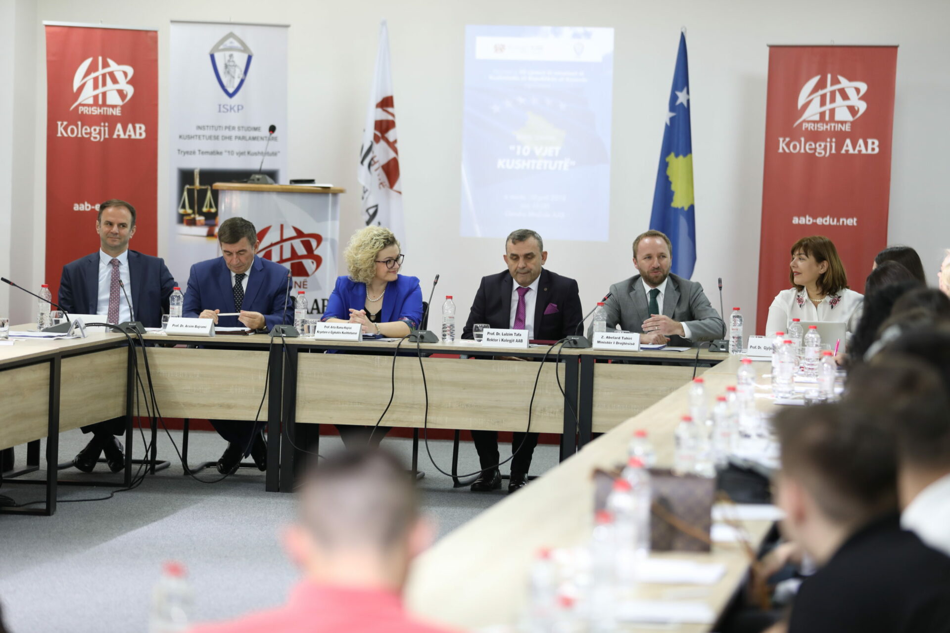 Në jubileun e parë të miratimit të Kushtetutës së Republikës së Kosovës, Kolegji AAB dhe Instituti për Studime Kushtetuese dhe Parlamentare, mbajtën tryezën tematike “10 vjet Kushtetutë”.