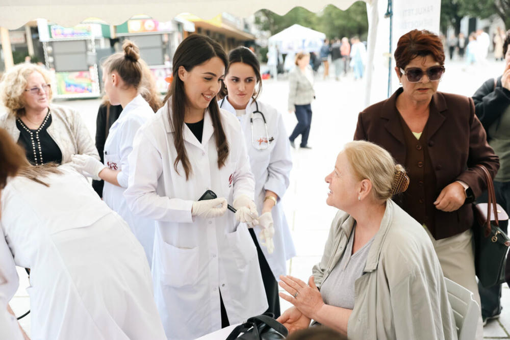 Në këtë ditë studentët e këtij fakulteti nën mbikëqyrjen e profesorëve ofruan matjen e tensionit, glikemisë, peshës trupore, matjen e pulsit dhe shërbime tjera falas për të gjithë kalimtarët.