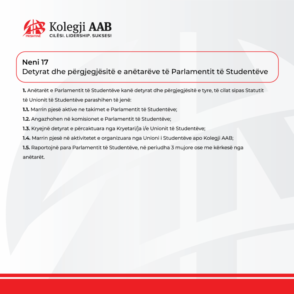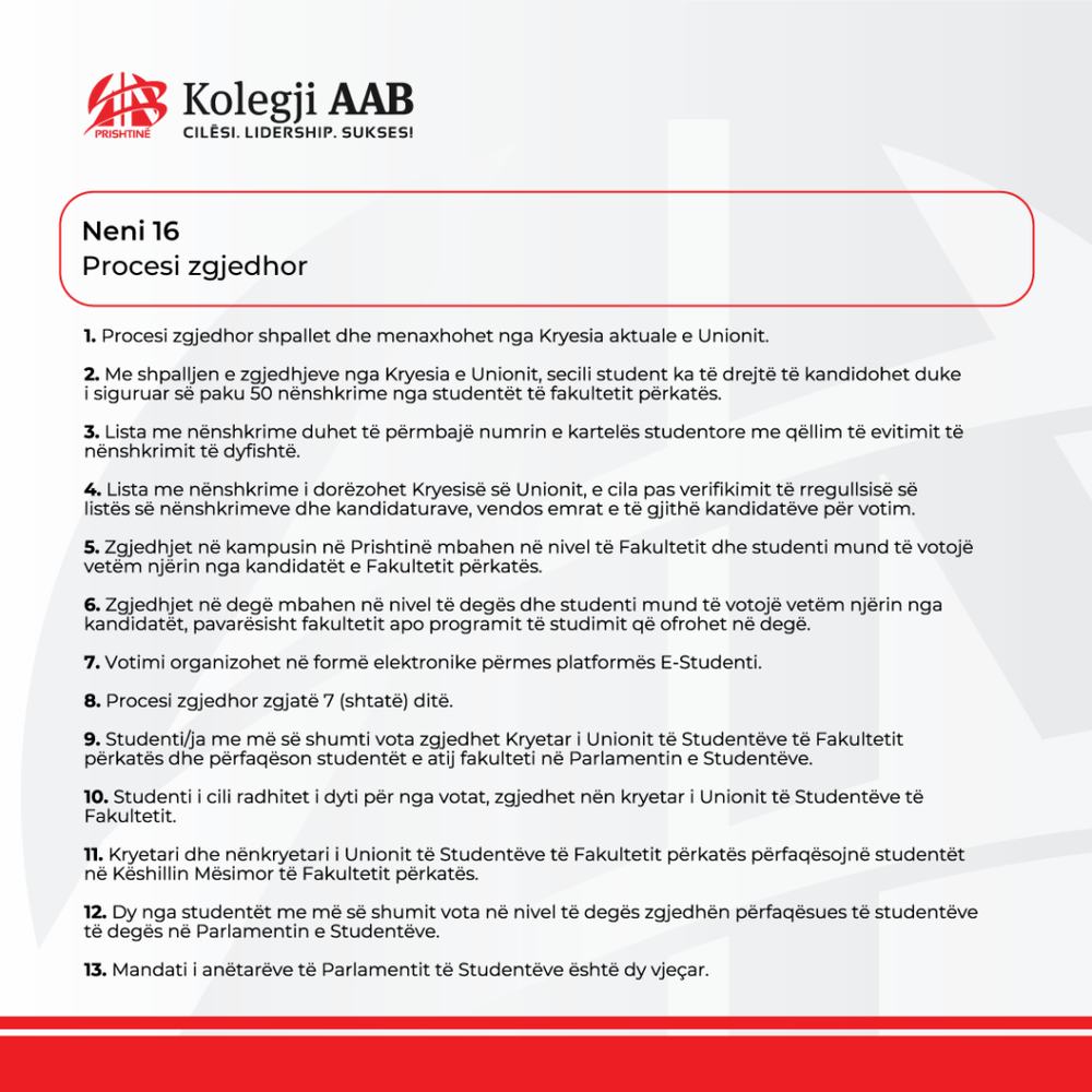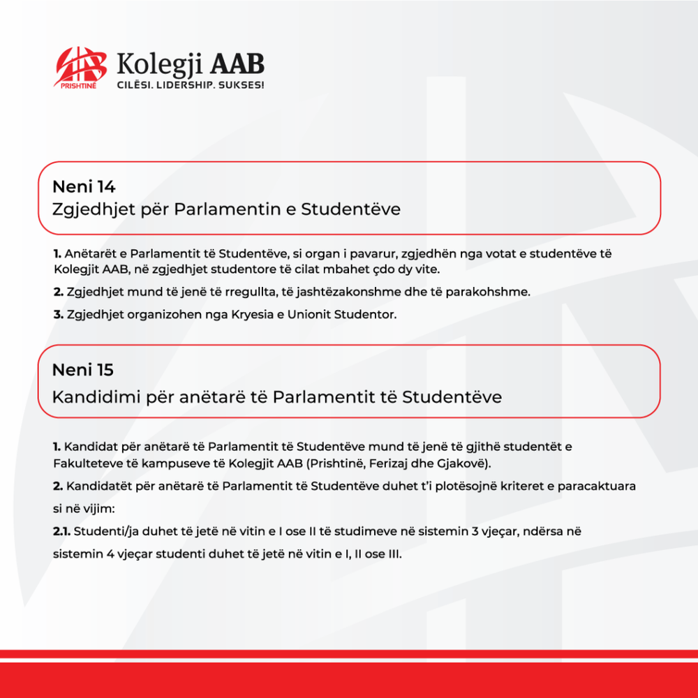 Ftohen të gjithë studentët e rregullt të Kolegjit AAB të marrin pjesë në zgjedhjet për përfaqësuesit e Unionit të Pavarur të Studentëve.
