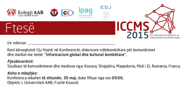 Keni kënaqësinë t’ju ftojnë në Konferencës shkencore ndërkombëtare për komunikimet dhe mediat me temë: “Informacioni global dhe kulturat kombëtare”.