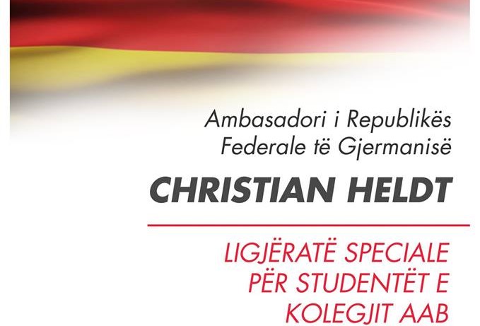 kemi kënaqësinë t’ju ftojmë të merrni pjesë në ligjëratën speciale të organizuar nga Kolegji AAB me Ambasadorin Gjerman në Kosovë, Sh.T. Christian Heldt.