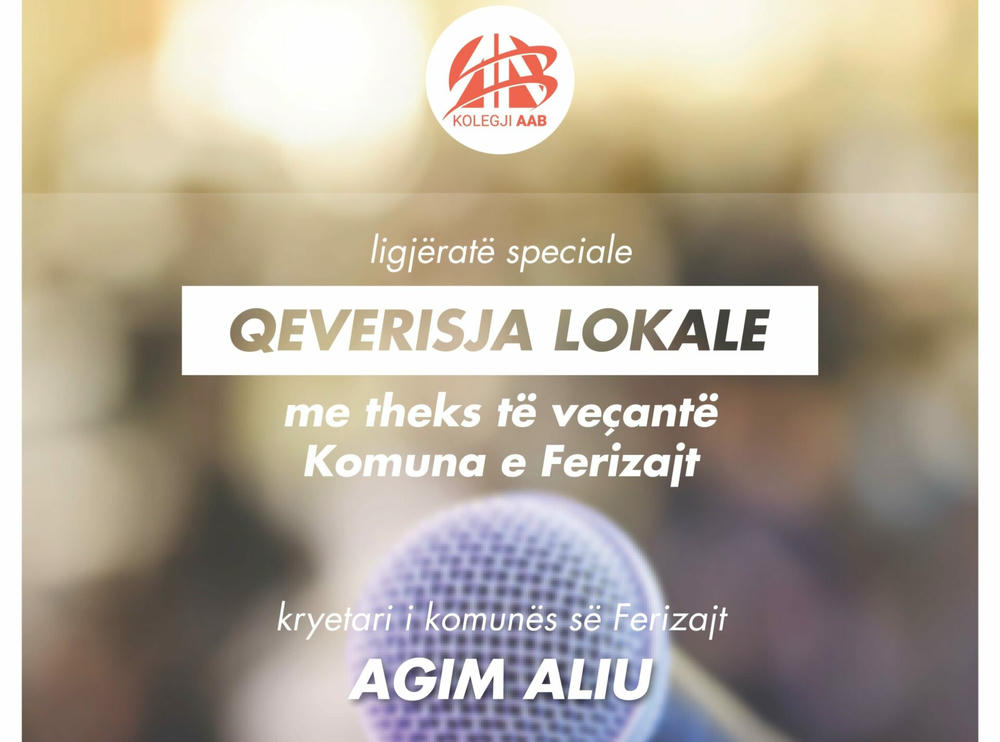 kemi kënaqësinë t’ju ftojmë të merrni pjesë në ligjëratën e organizuar nga Kolegji AAB me kryetarin e komunës së Ferizajt, Agim Aliu, me temën “Qeverisja lokale, me theks të veçantë Komuna e Ferizajt”