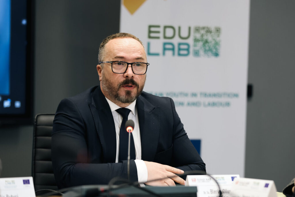 Aleksandar Chvorostov, Menaxher i Projektit në Institutin “Economica” për Kërkime Ekonomike, prezantoi objektivat, ndikimin dhe pritshmëritë e projektit “EDU-LAB”. Znj. Qamile Sinanaj, Koordinatore Kombëtare për Programin Horizon Europe, ndau informacione mbi këtë program dhe ndikimin e tij në arsimin e lartë në Kosovë.
