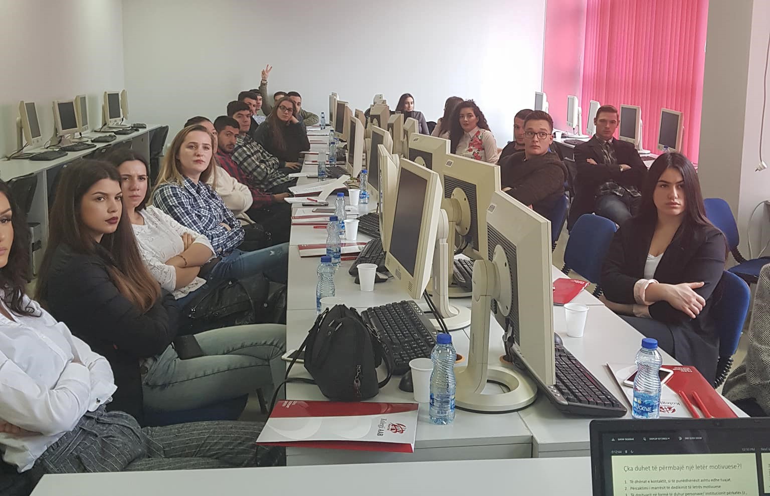 Në kampusin e Gjakovës u mbajt pjesa e parë e këtij moduli, nga mësimdhënësit e Fakultetit Ekonomik Donat Rexha dhe Adelina Gashi, të cilët ligjëruan lidhur me përgatitjen e një CV-je profesionale, letre motivuese, kërkese dhe ankese.