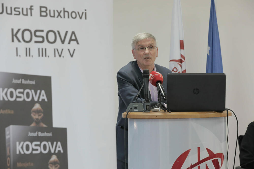 Libri “Kosova” në tetë vëllime paraqet certifikatën historike të shtetit të Kosovës, ku Dardania si lidhje e antikitetit me proceset shoqërore, shpirtërore dhe politike, përcakton rolin e saj dominues në historinë politike shqiptare. Buxhovi theksoi se është dashur të ballafaqohet me stereotipe ideologjike dhe ato të klisheve serbomëdha që për fat të keq po e rëndojnë sot e gjithë kohën historiografinë shqiptare në Tiranë dhe Prishtinë.