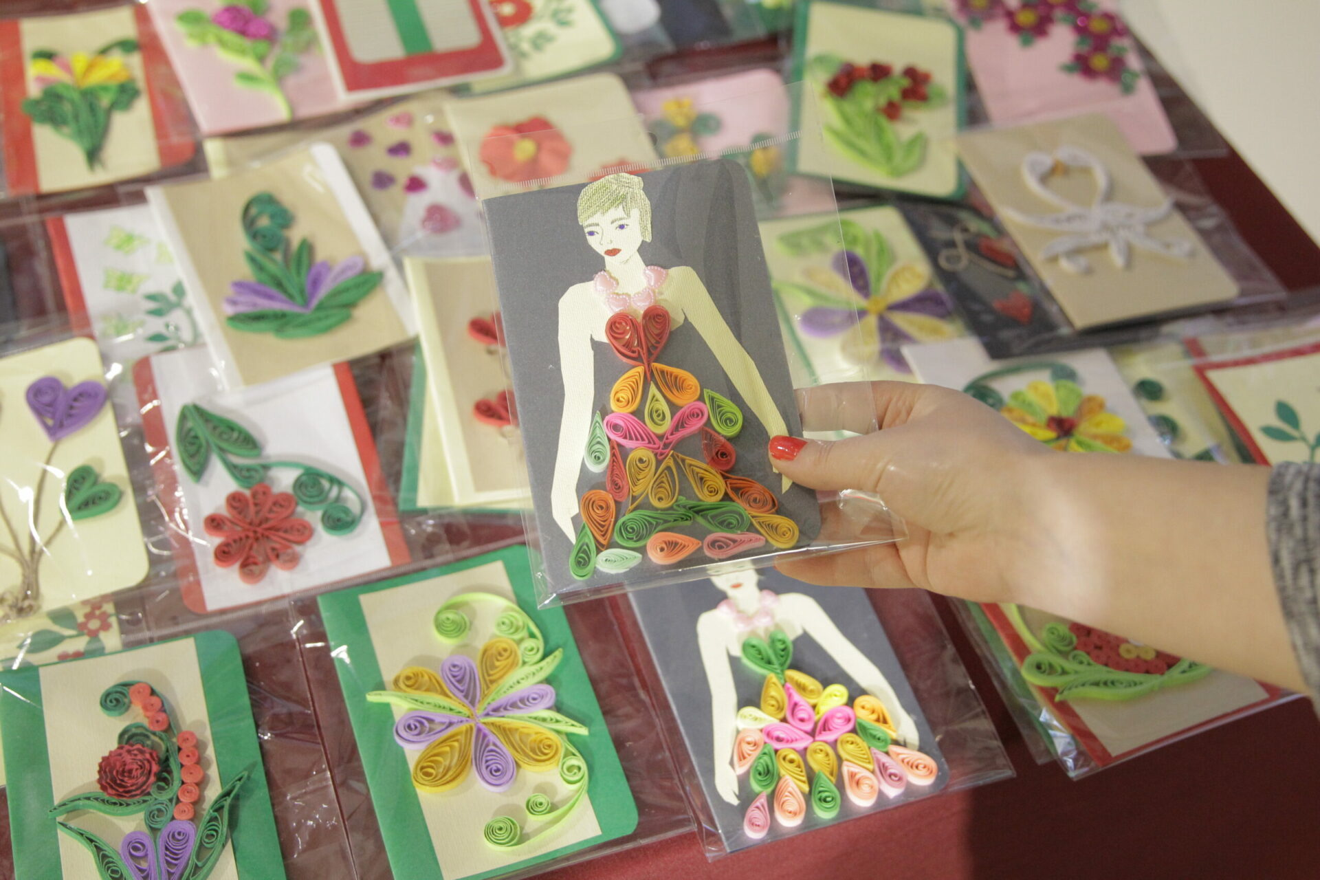 Produktet të cilat po ofrohen nga Shoqata “Down Syndrome Kosova” janë kartolina dhe xhem mjedrash, të përgatitura me shumë dashuri nga personat me sindromën down.