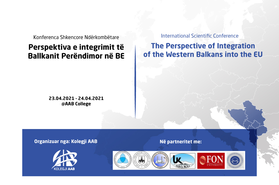 Të premten dhe të shtunën, më 23 e 24 prill 2021, organizuar nga Kolegji AAB në bashkëpunim me universitete partnere nga Shqipëria, Maqedonia e Veriut e Kroacia do të zhvillojë punimet Konferenca Shkencore Ndërkombëtare “Perspektiva e integrimit të Ballkanit Perëndimor në BE”.