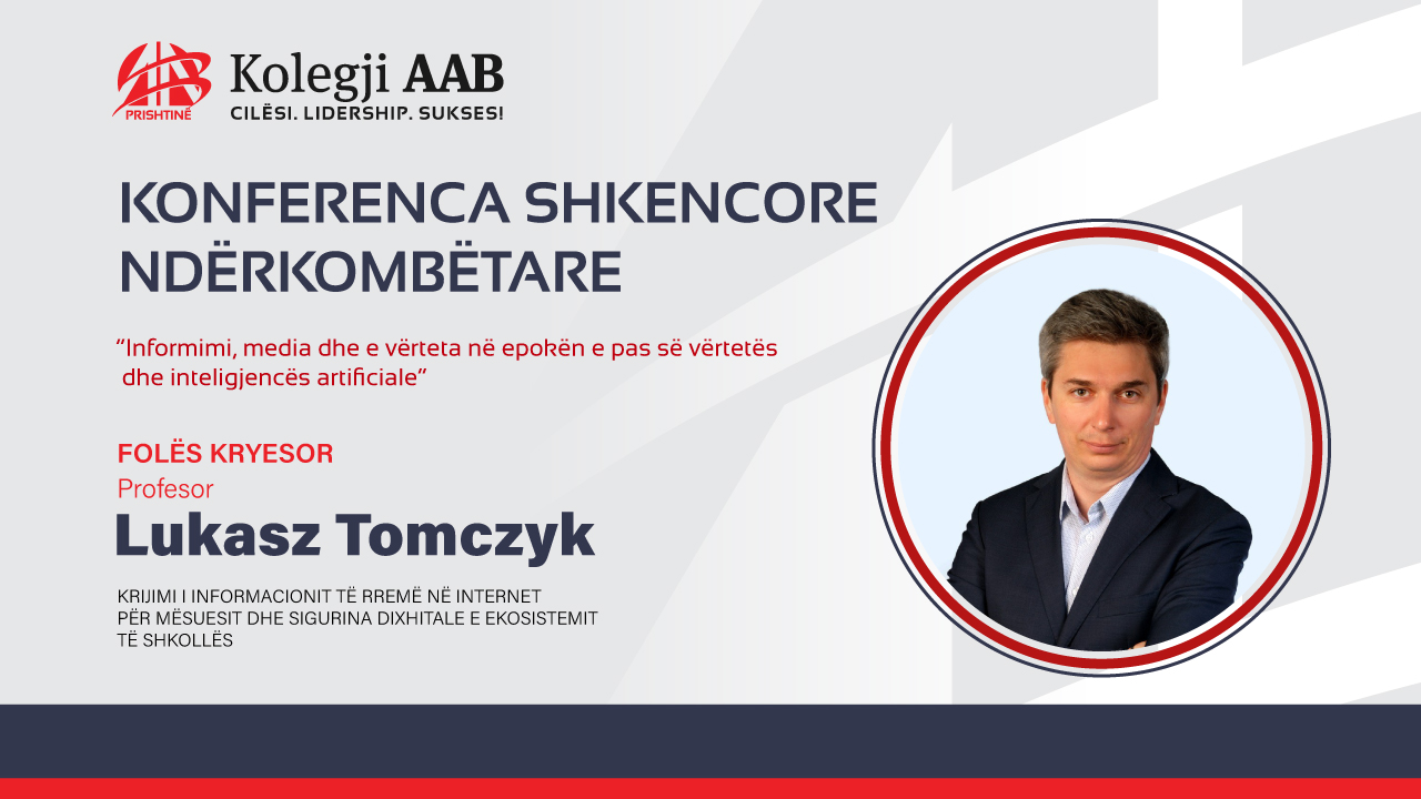 Folës kryesor në konferencën shkencore ndërkombëtare të komunikimeve të Kolegjit AAB, do të jetë Prof. Dr. Lukasz Tomczyk, i cili në vitin 2022 u shpall “Top 2 % i shkencëtarëve më me ndikim në botë” nga rangimi i Universitetit të Stanfordit dhe Elsevier (pronar i Scopus).